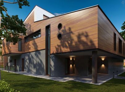 В современная отделка фасада частного дома задействовано дерево – прекрасный натуральный материал, который как нельзя лучше вписывает дом в окружающую среду, не нарушая гармонию. Мы видим, что сегодня есть огромный смысл в том, чтобы целиком интегрировать строение в природу, создавая условия для жизни, полностью отличные от городских.