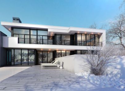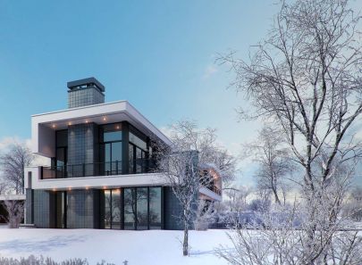 В каждой детали фасада выражена яркая конструктивность, которая не теряет своей актуальности и в современности. Образ, сочетающий идеи международного стиля – модернизма, а также русского конструктивизма идеально вписывается в естественные загородные просторы.