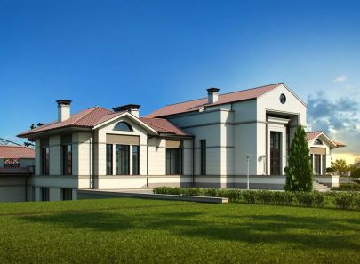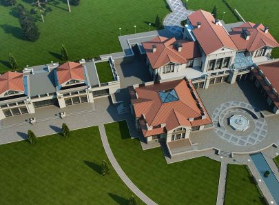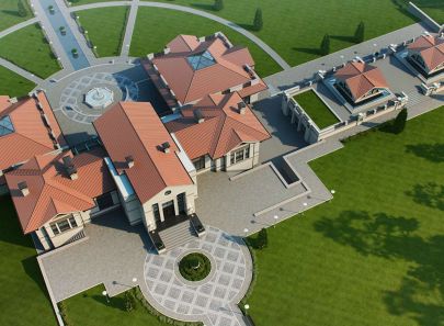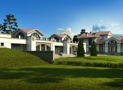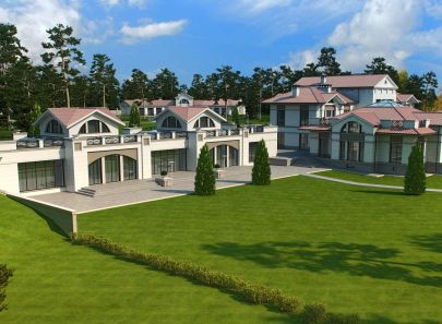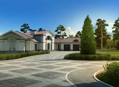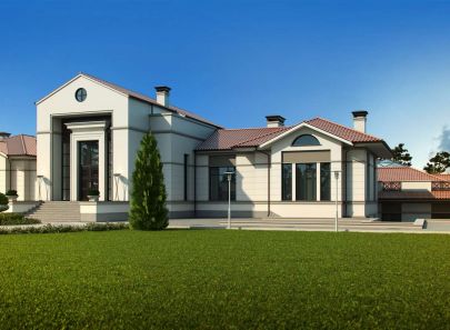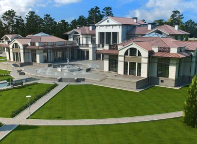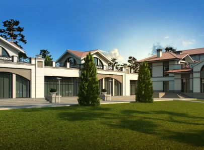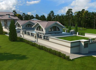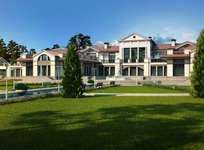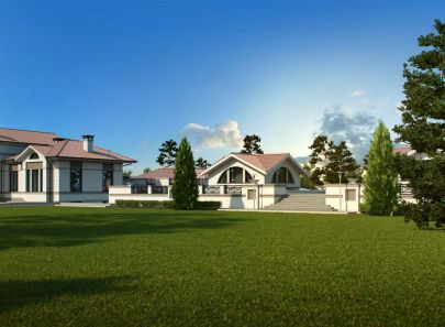 Загородный дом – целое поместье, выполненное в неоклассическом стиле. Античные архитектурные элементы, присутствующие как в белом фасаде дома, так и в обустройстве сада, помогают создать атмосферу роскоши загородного дома в Италии. Центральность композиции и величественный барокковый парк придают особый праздничный дух этому дому в любое время года.