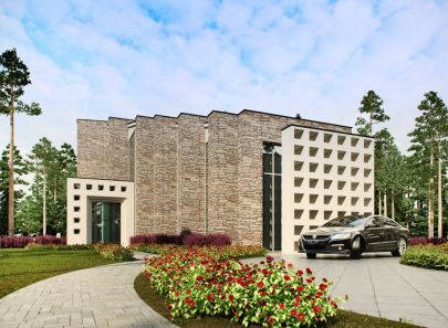 Данное строение – один из тех случаев, когда функциональность помогает достичь высокого качества дизайна, подкрепленного удачным выбором облицовочных материалов, а именно контрастирующих между собой абразивного кирпича и стекла.