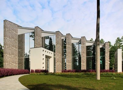 Дом словно имеет две стороны. Одна из них – глухая, массивная и защитная, а другая – открытая, светлая и дружелюбная. Строению присуща каскадность, геометричность и артикуляция отдельных функциональных элементов. В частности, входной части дома.