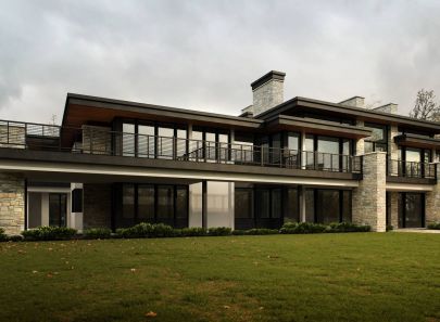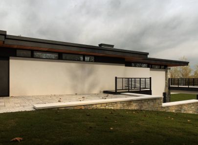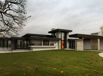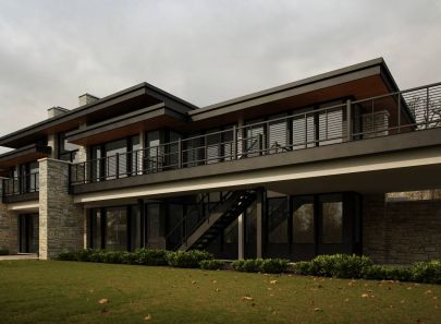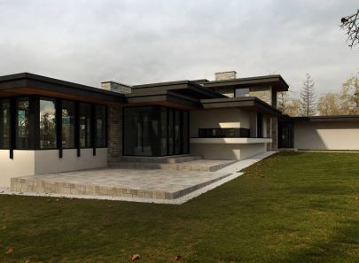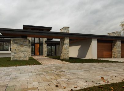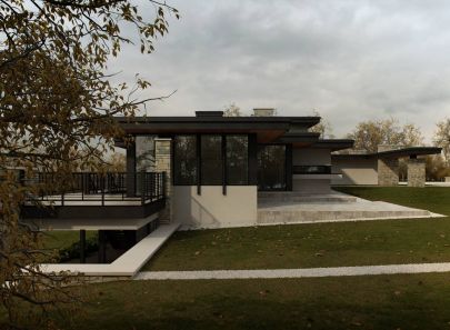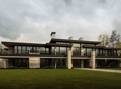 Беглый взгляд на дизайн-проект экстерьера позволяет уловить черты стиля прерии и характерные детали раннего модернизма, а особенно – периода, в котором творил финский архитектор Алваар Аалто. Именно эти направления в значительной степени отразились на внешнем облике загородного дома, сделав его по-своему лаконичным, но и индивидуальным, заметным.