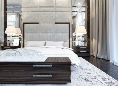 Дизайн спальни арт деко эклектично объединяет классические, модернистские, современные мотивы. В этом – сложность его воплощения и притягательность конечного результата.