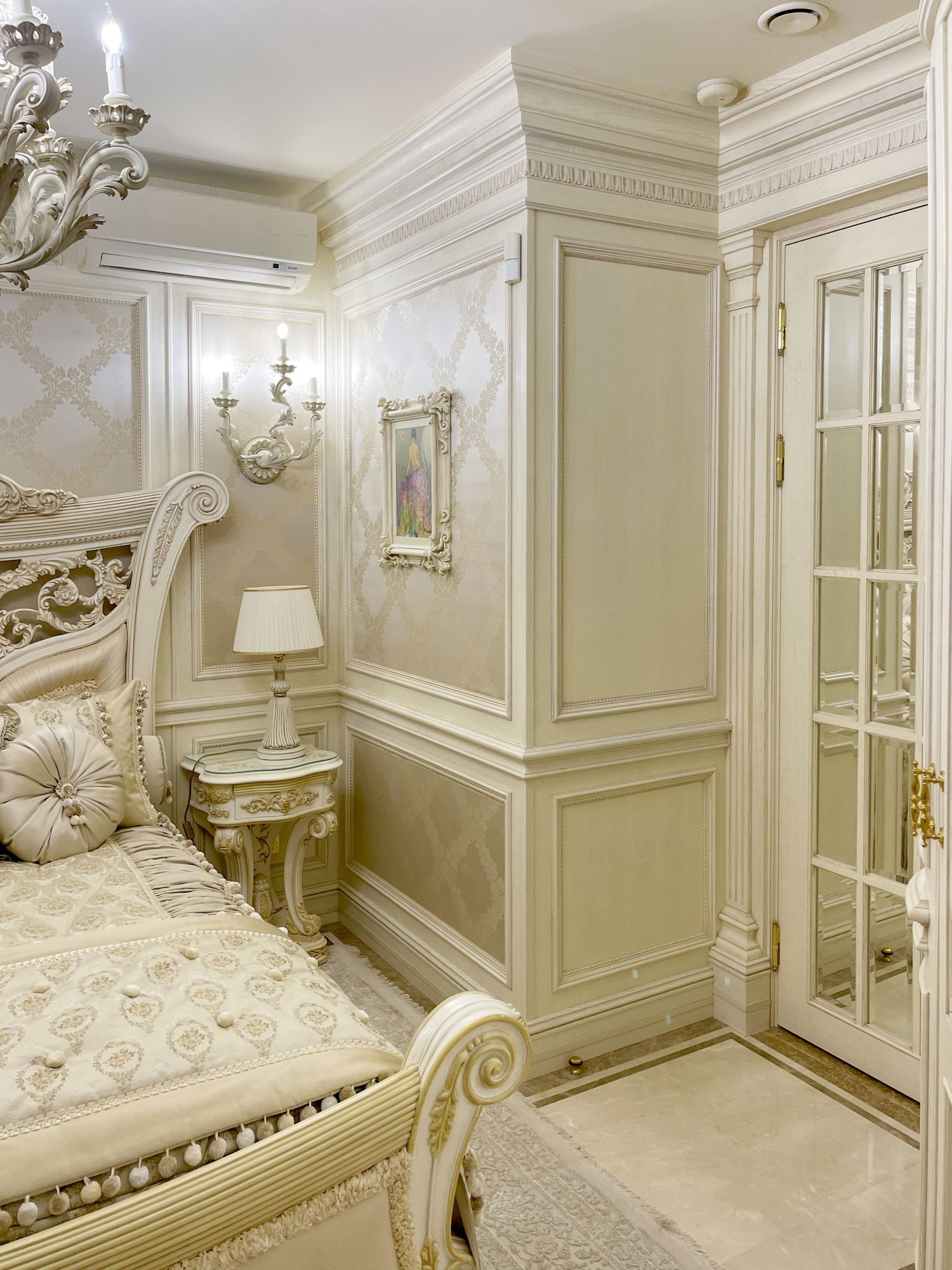 Отделка стен и дверного портала в спальне