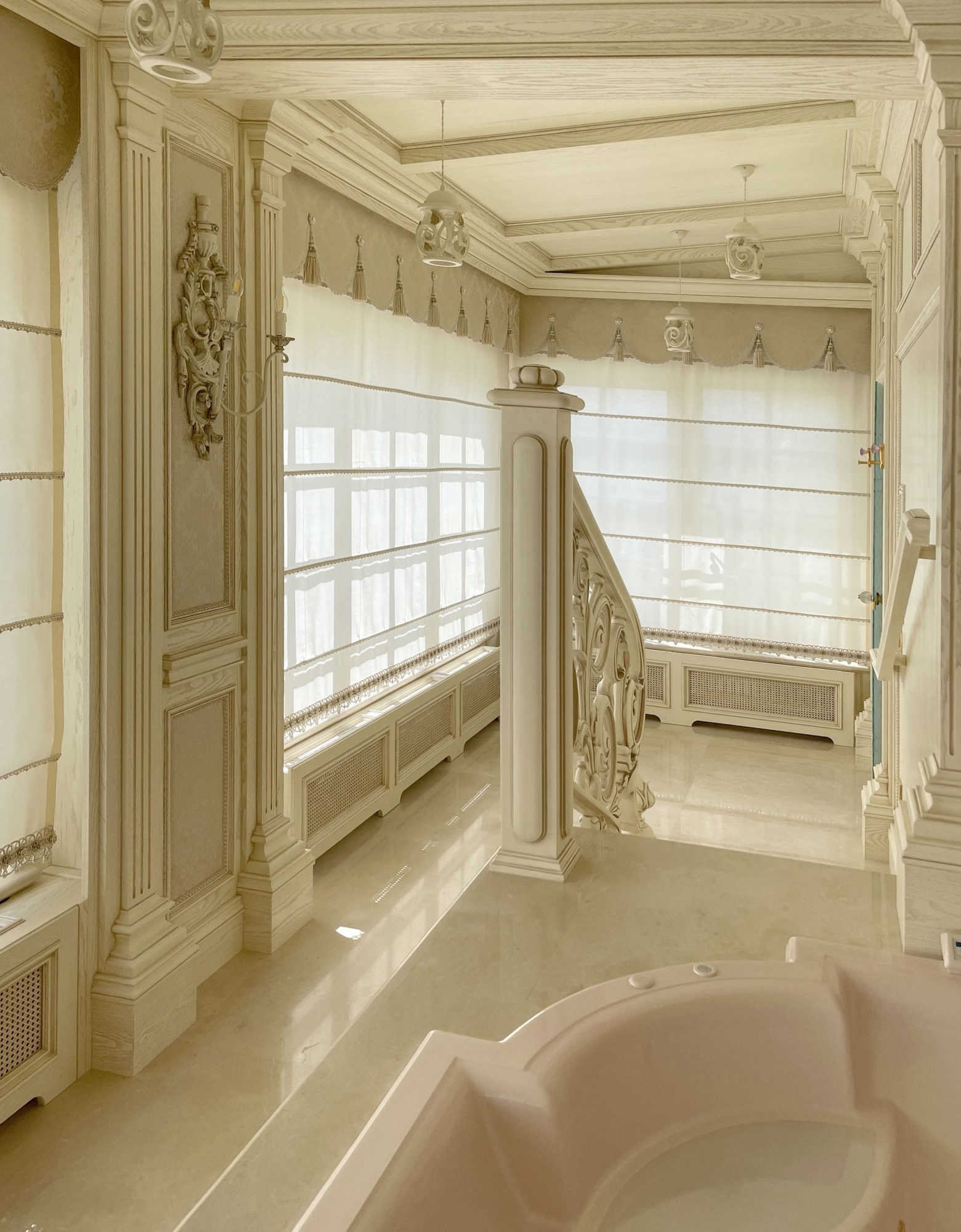 Дизайн ванной с деревянным декором стен