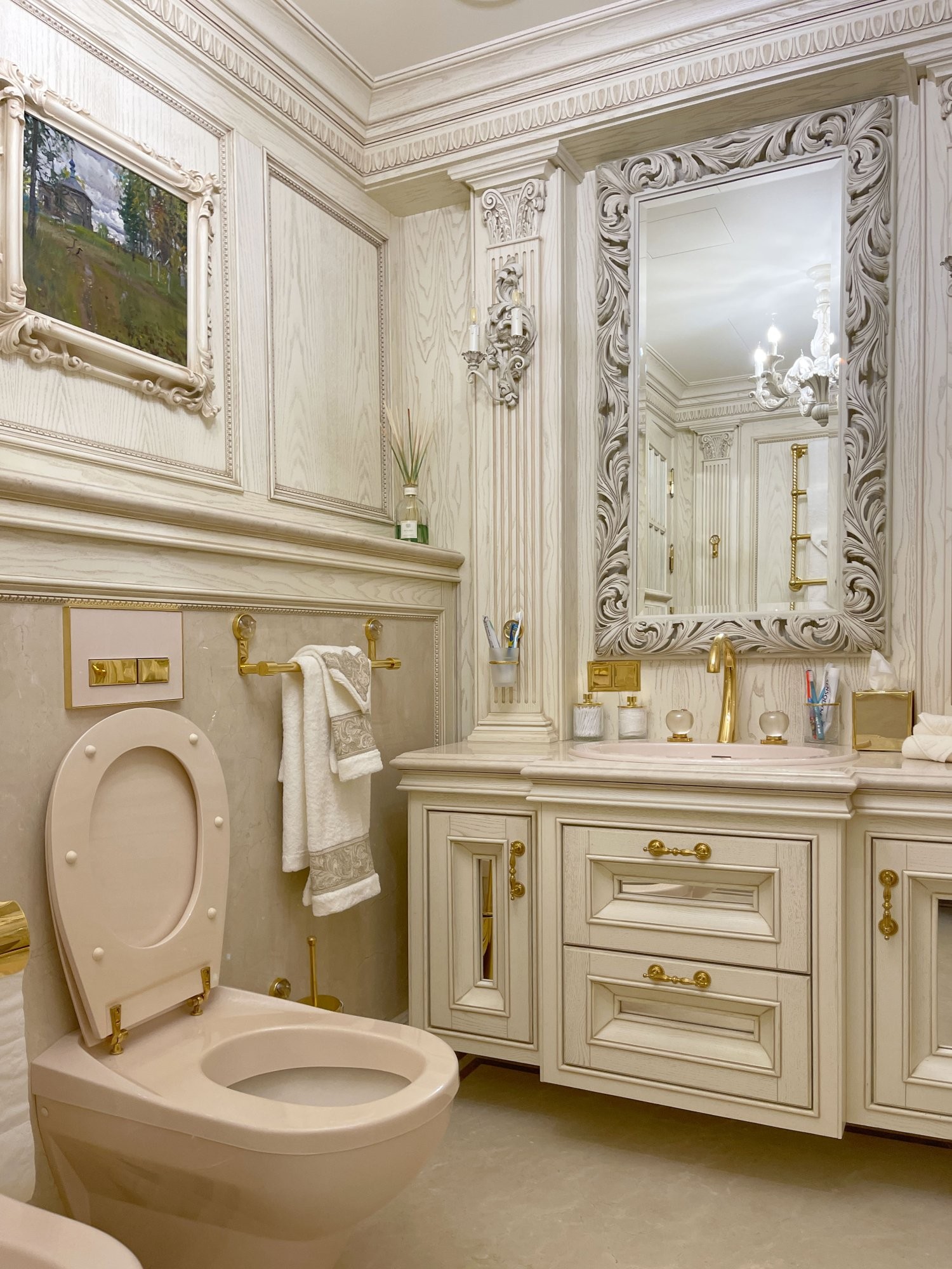 Аристократический санузел с резным деревом