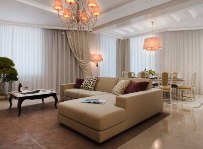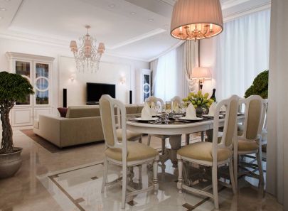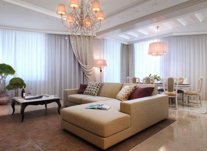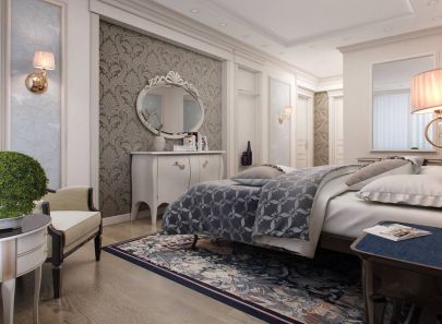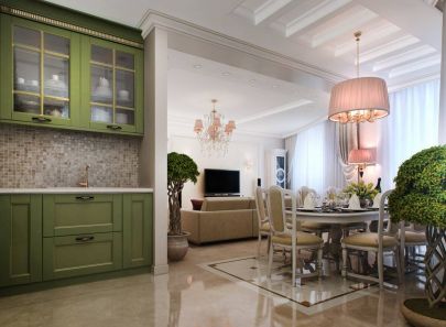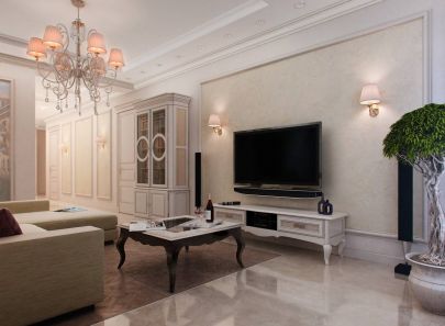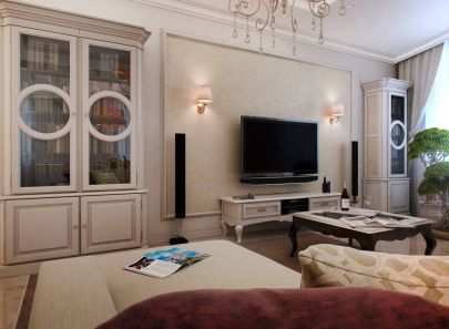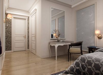 Проект интерьера двухкомнатной квартиры-распашонки в стиле современной классики