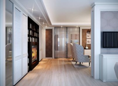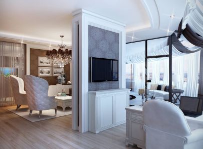Дизайн квартиры в стиле неоклассика сочетает монументальные черты: