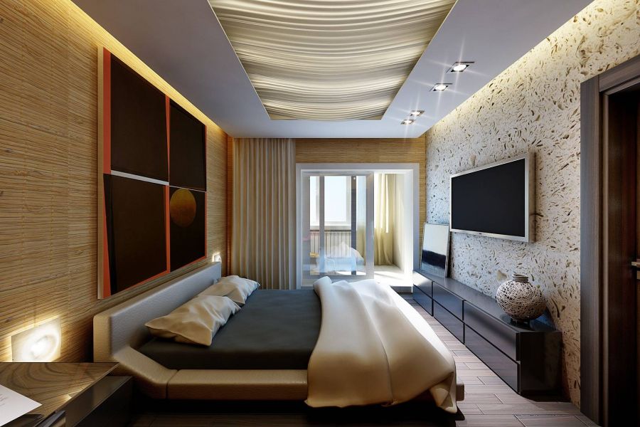 Простой прием создать бежево-коричневый интерьер спальни – использовать паркет красивых насыщенных цветов, а для стен и текстиля выбрать нежную пастель. Разнообразить оформление можно рельефным декором, мягкой мебелью с плюшевой текстурой.