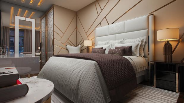 В рамках этого же проекта зеркальная стена украсила спальную комнату в благородных оттенках слоновой кости.