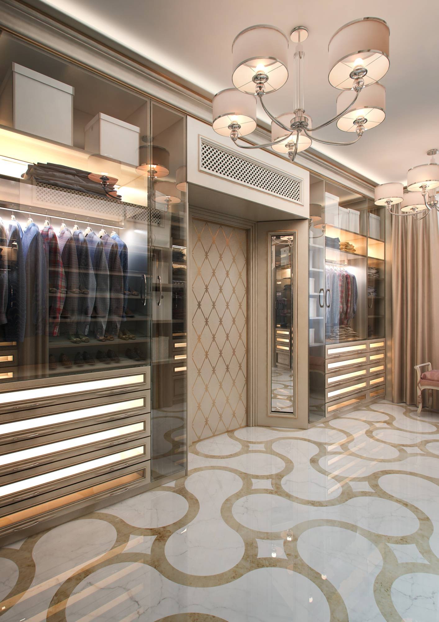 Меблировка в просторной гардеробной