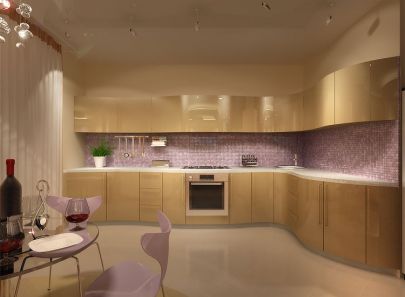 Мягкие, скругленные линии кухонного гарнитура идеально вписали его дизайн в общую концепцию интерьера.