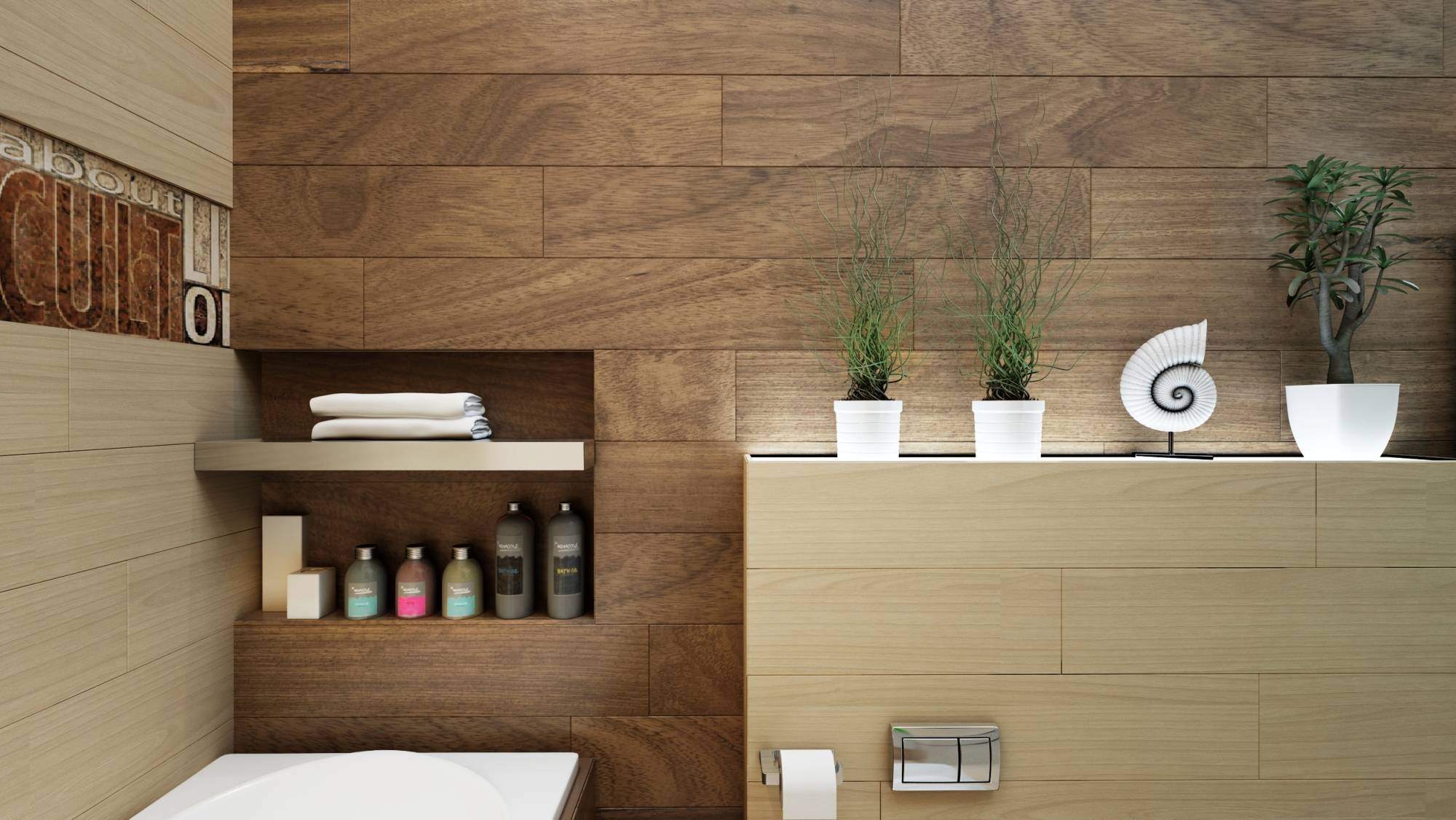 Декор интерьера ванной под дерево