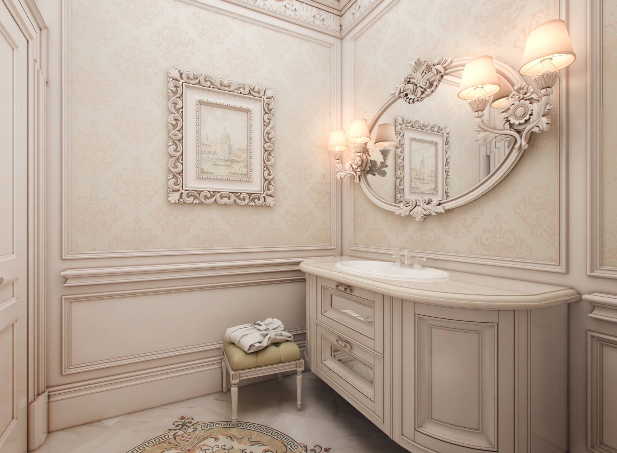 Резная мебель в дизайне туалета