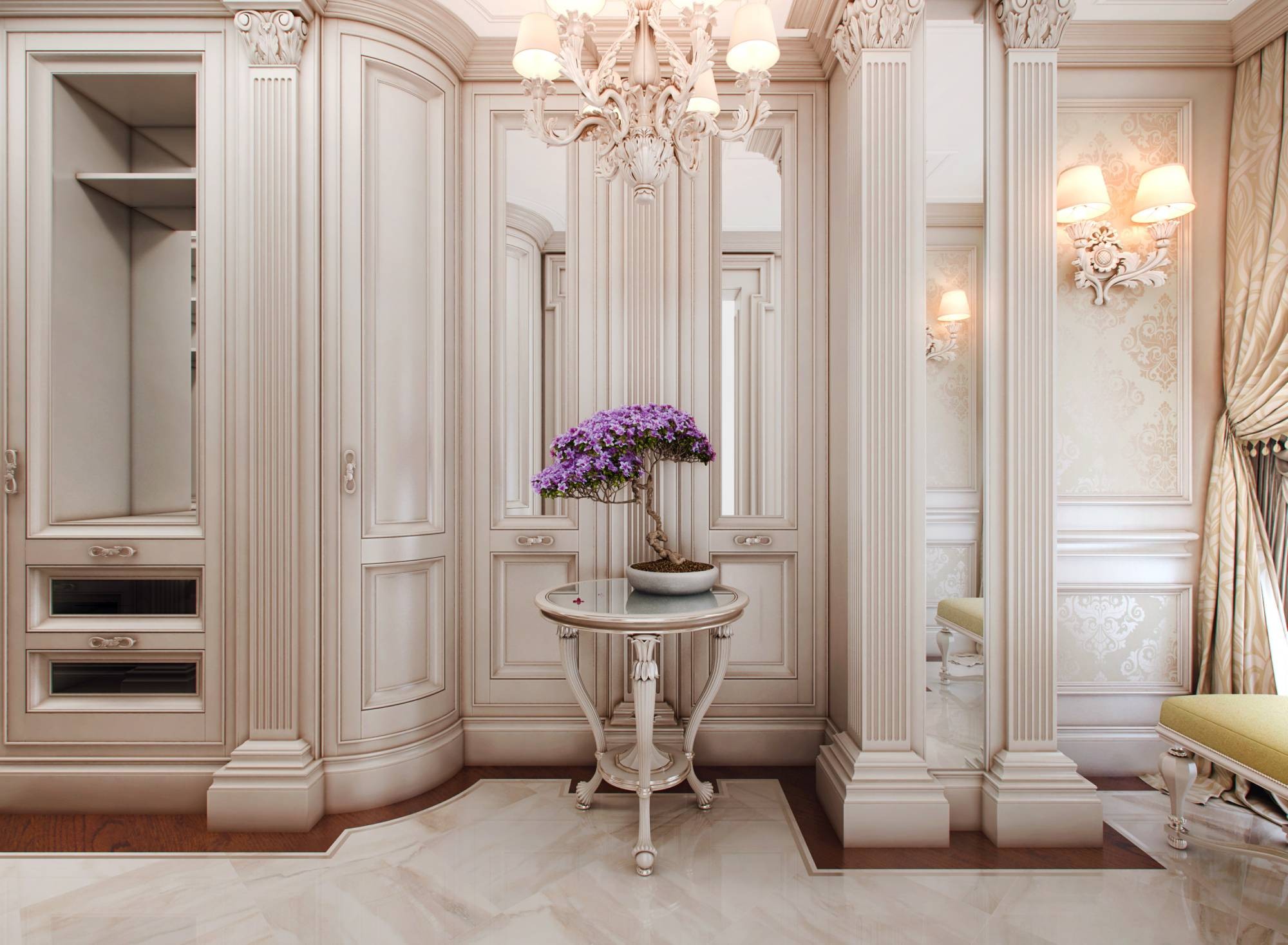 Белая мебель и декор в дизайне гардеробной