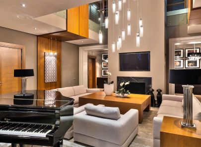Двухуровневые пентхаусы относятся к элитному сегменту недвижимости. Большие площади (как правило, от 200 до 1000 и более кв. м) ставят задачу не просто функционально оформить пространство, но максимально выигрышно использовать особенности апартаментов – наличие второго света, панорамного остекления, лестницы, террасы.