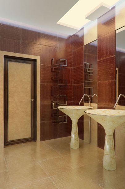 Неординарность и четко обозначенный характер интерьеру трехкомнатной квартиры придает обращение в декоре к экзотическим элементам, свойственным афро-стилю. Имитация кожи рептилии становится лейтмотивом всех трех комнат.
