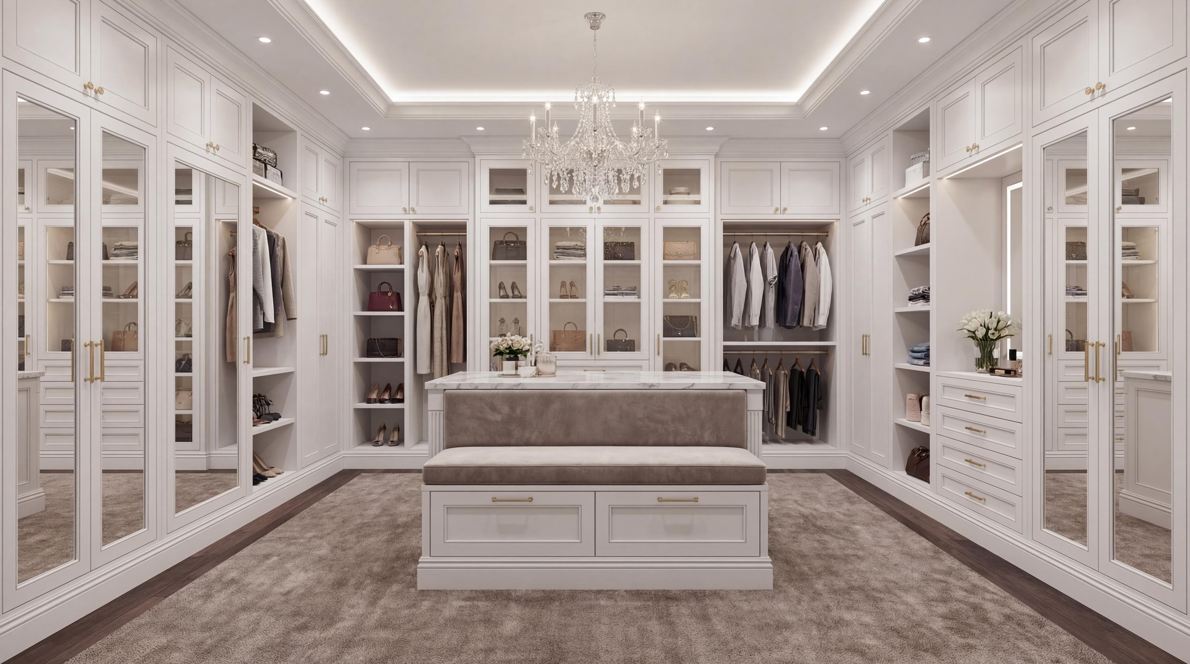 Светлая гардеробная с островом