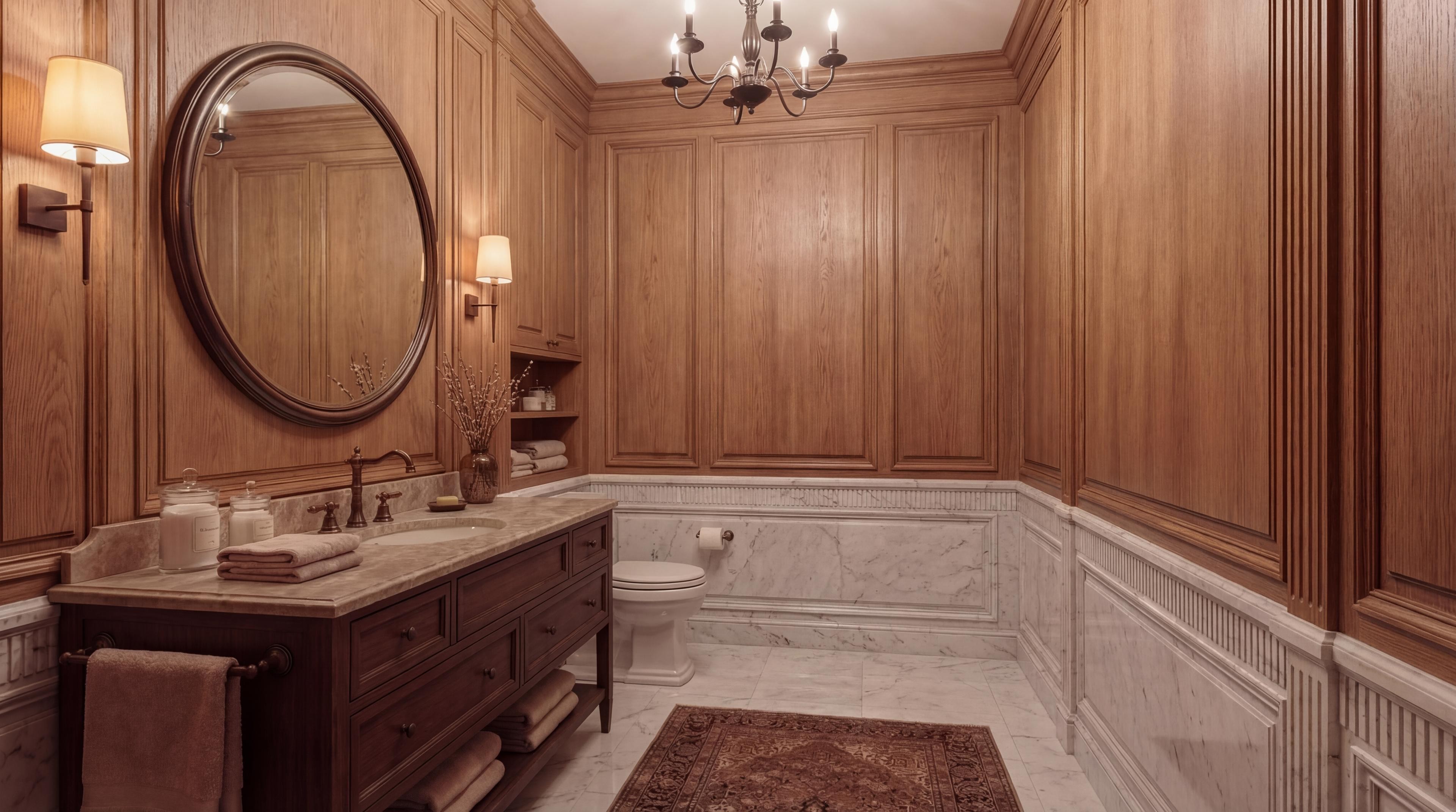 Санузел с деревянной отделкой
