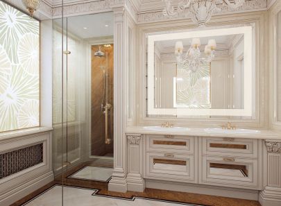 Неяркие белые, бежевые и песочные цвета демонстрируют свою органичность в дизайне разных по функциональности помещений: гардеробной комнаты, санузла, кабинета. Особенно в сочетании с зеркальными и стеклянными поверхностями, которые поддерживают идею строгой, но изящной красоты.