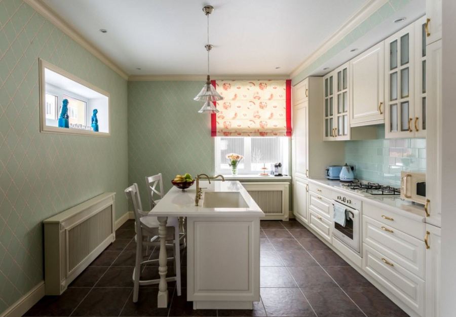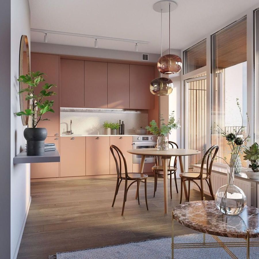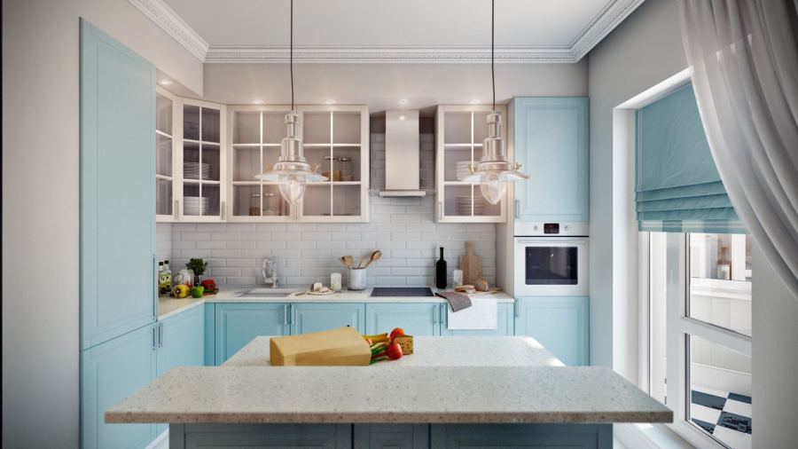 Светлые пастельные тона в интерьере кухни – прием, который поможет расширить компактное помещение. В качестве доминанты прекрасно ведут себя: