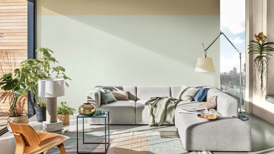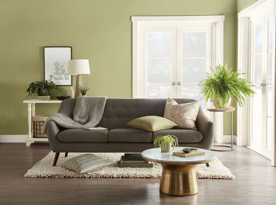 | Фисташковый | Прекрасный компаньон для темно-серого дивана и пола. |