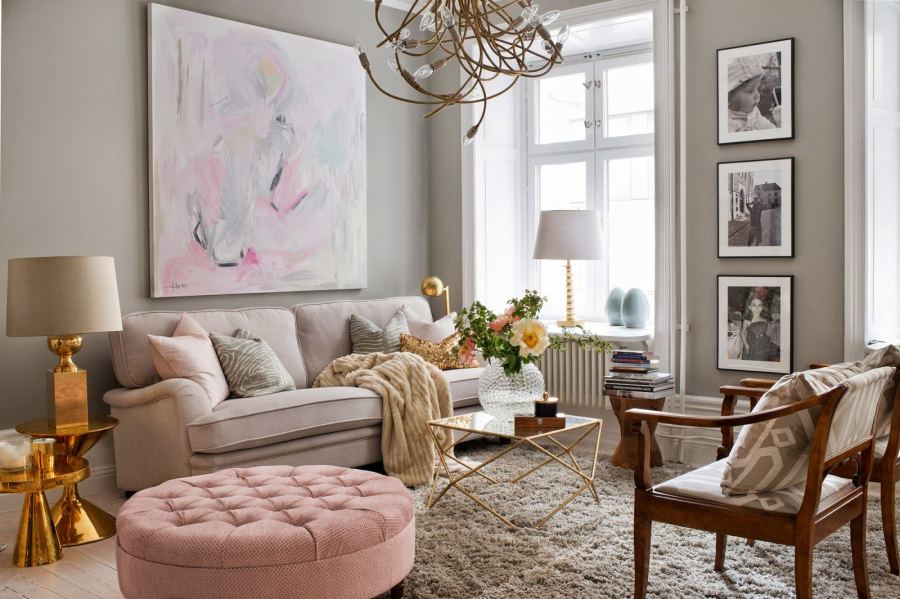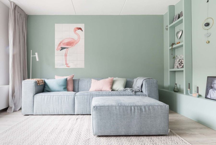 - Сочетание пастельных цветов в интерьере с нейтральными оттенками