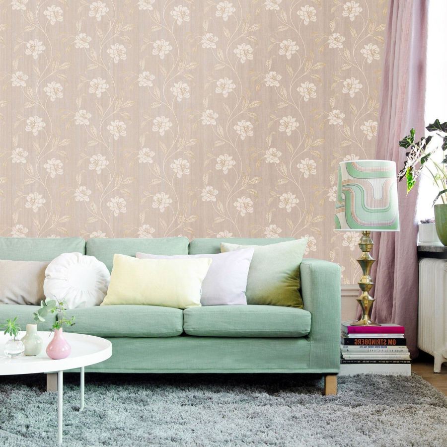 Обои в пастельных тонах в жилом интерьере могут быть однотонными или с узором. Рисунок должен поддерживать стилистику помещения: в современной обстановке – геометрические фигуры, в классической и кантри – цветочные орнаменты, вензеля. Если продолжить колористику обоев в отделке стен и текстиле (подушках, портьерах), получится завершенная композиция.
