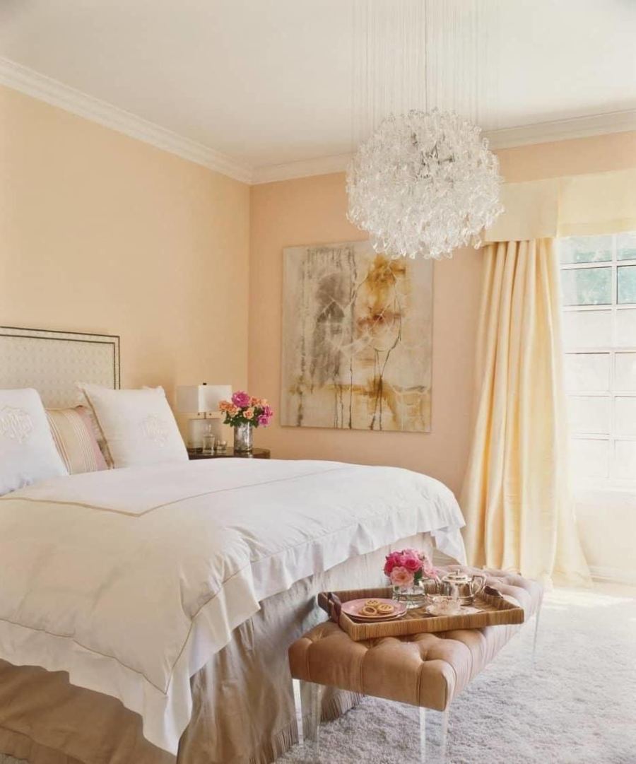 | Персиковый | Органично смотрится с голубым, бирюзовым, коралловым. Также его можно спокойно использовать в монохромном варианте (например, для спальни). |