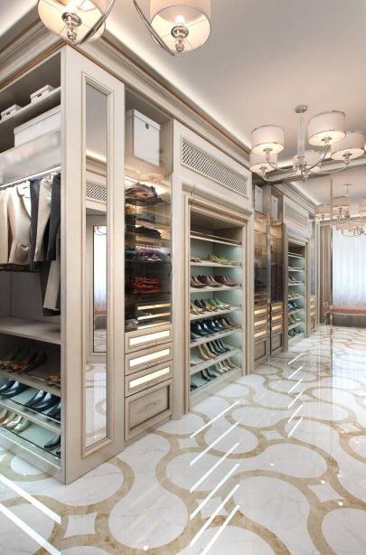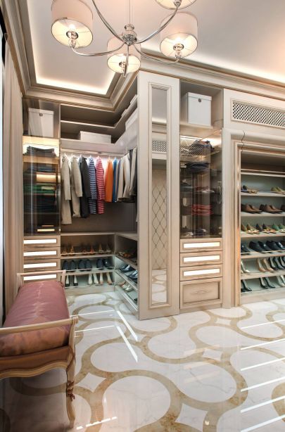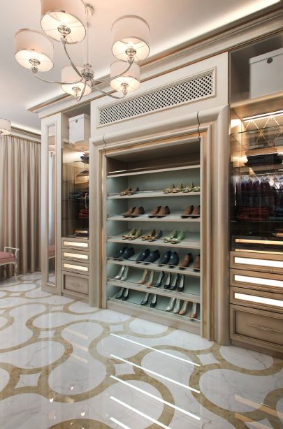 Поскольку пространство квартиры позволяет – была создана элегантная гардеробная с отдельными зонами "для нее" и "для него".
