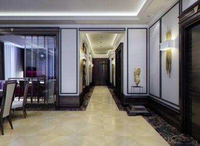 Квартира в ЖК Садовые кварталы выполнена в стиле современного ар-деко – контрастная палитра, благородные материалы, необычные формы. В результате интерьер получился и комфортным и статусным.