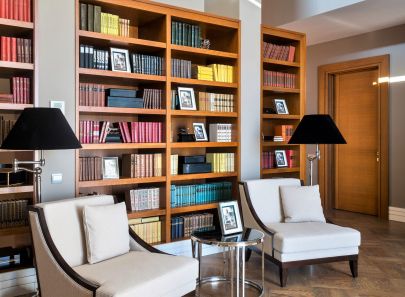 При правильном выборе мебели библиотечную зону можно обустроить практически в любом месте, кроме кухни (там слишком влажно) и подвала (там сыро и не хватает воздуха). Если книг много, можно распределить их по нескольким комнатам: часть расставить в спальне, литературу для маленьких – на полках в детской, остальные отправить в кабинет или гостиную. Не переусердствуйте с собранием книг в спальне, т.к. они собирают пыль.
