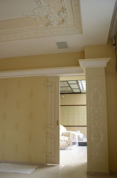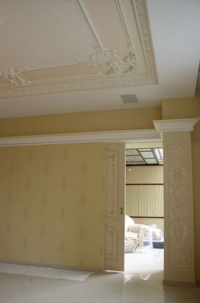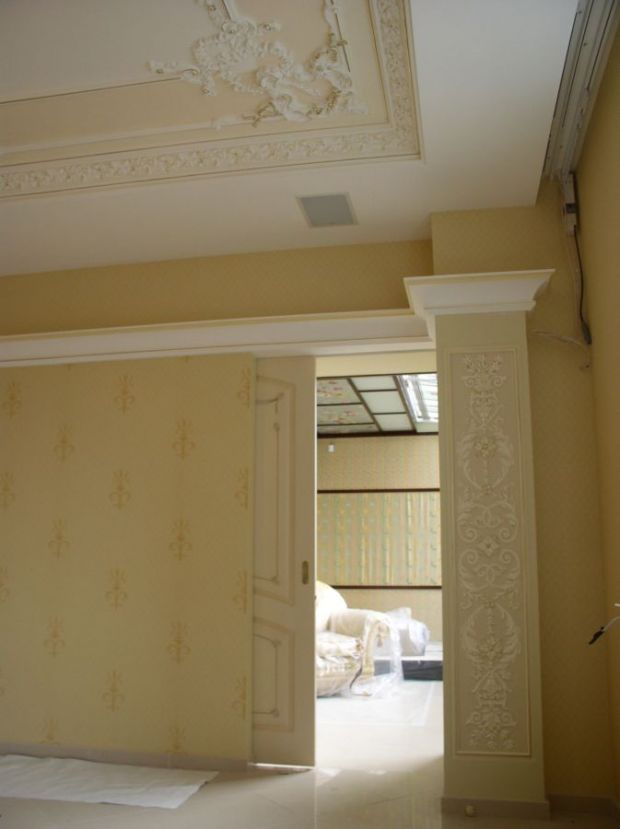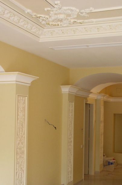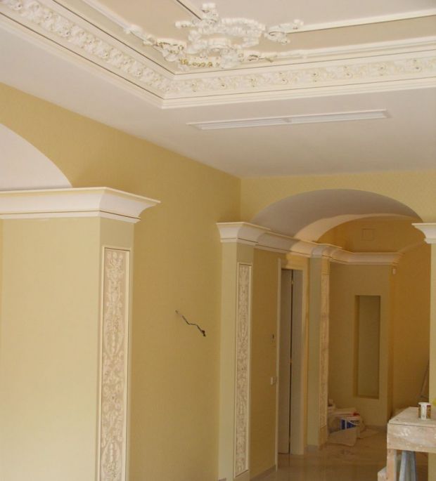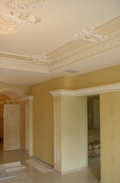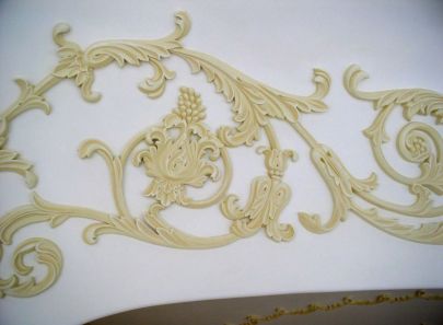 - Эксклюзивный дизайнерский ремонт квартиры предпочитает, как правило, гипсовый лепной декор, выполненный на заказ. Это натуральный, экологически чистый продукт, без запаха, абсолютно безопасный для человека. От искусственных аналогов отличается значительным весом. Обладая гигроскопичностью, гипс поглощает излишки влаги и тем самым регулирует уровень влажности в комнате. Материал имеет белоснежный цвет и высокую пластичность: из него можно лепить совершенно любые по конфигурации детали.