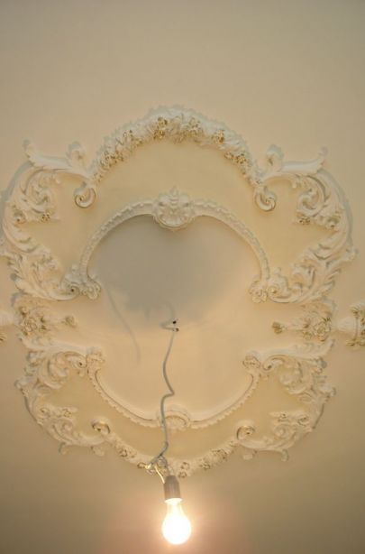- внутренняя часть потолка между молдингами окрашена в более темный оттенок, это делает плоскость более выразительной;