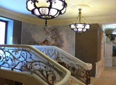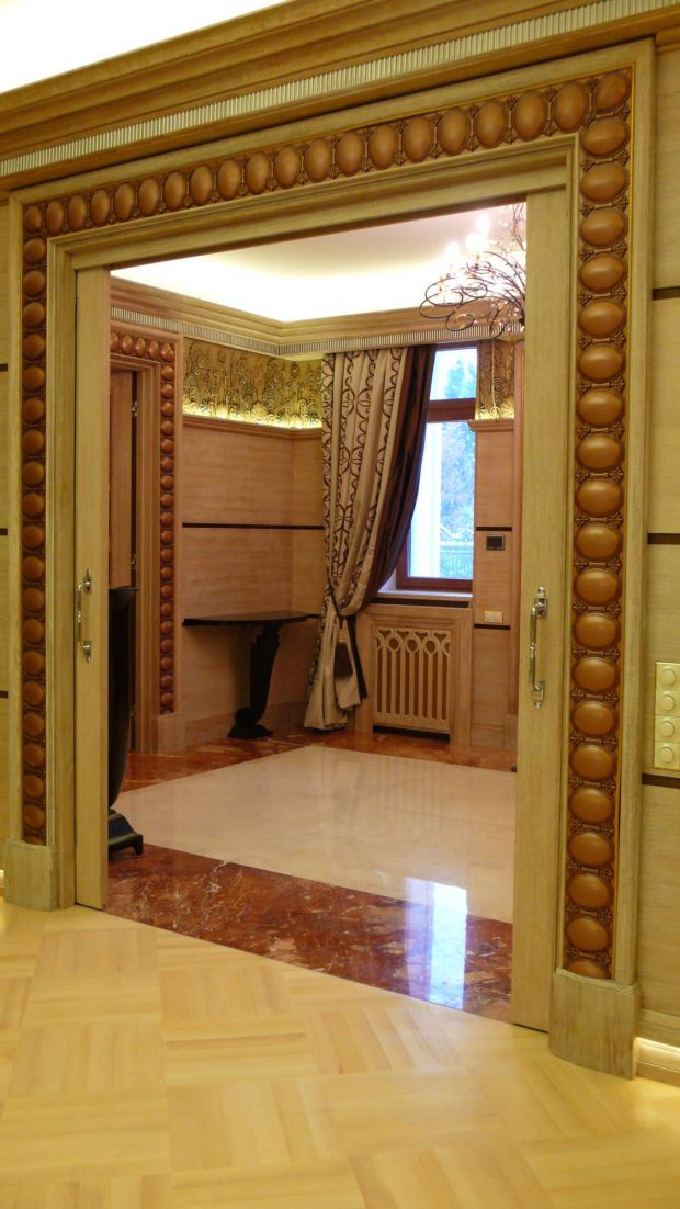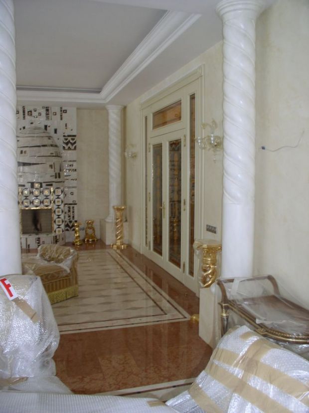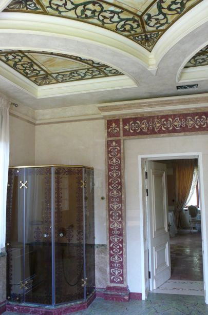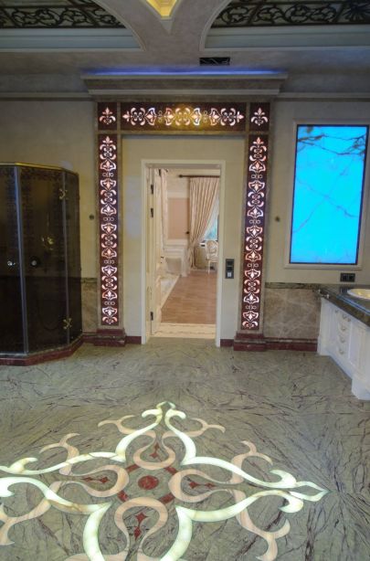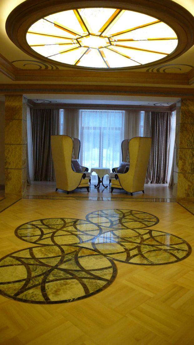 Атрибут классических интерьеров – инкрустированные мраморные полы с растительными и геометрическими узорами. Современные технологии обработки с помощью компьютерных программ позволяют вырезать из камня самые сложные фрагменты мозаичных панно, напольных розеток.