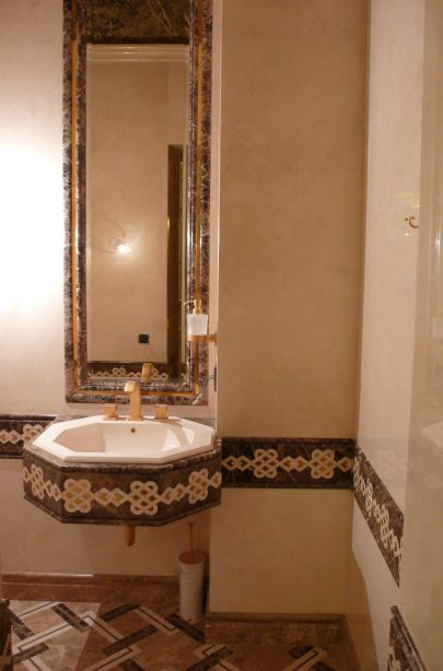 Этот материал гармонично проявляет себя в различных интерьерных стилях, природные расцветки легко вписывают его в современное или классическое окружение. Мрамор используют не только в обустройстве ванной комнаты, где он наиболее уместен благодаря чистоте и прочности, но и в гостиной, столовой, кухне, спальне и холле – здесь мраморное покрытие демонстрирует природную красоту и декоративную универсальность. Особенно красиво смотрится полированный камень.