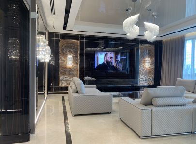 Команда "ТопДом" разработала и воплотила дизайн "под ключ" для трехкомнатных апартаментов в современном стиле. Темная цветовая палитра, ценные породы дерева и мрамор, глянцевые фактуры, акцентированный декор сформировали роскошную обстановку.