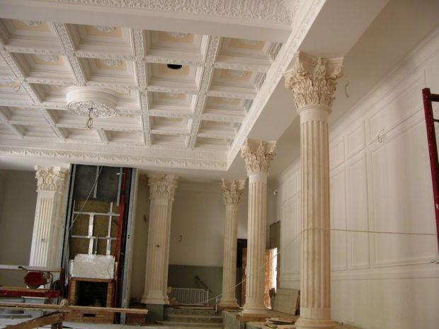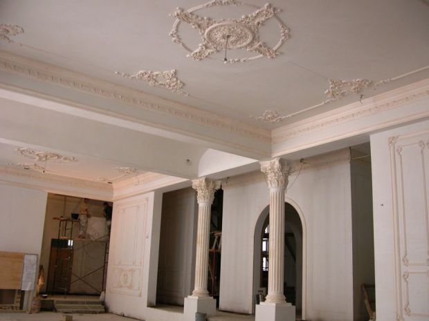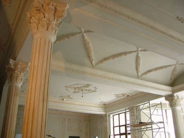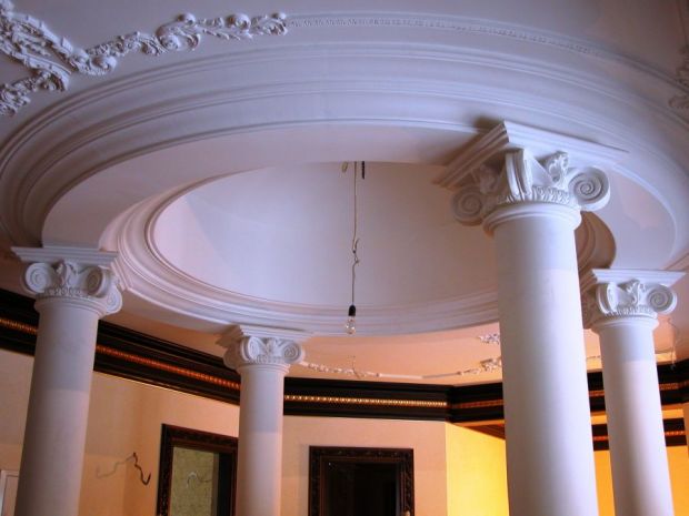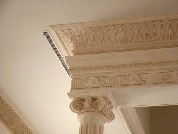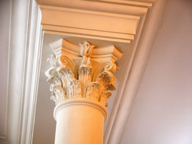 Гипсовый декор называют застывшей музыкой. Это классический вариант оформления колонн, стен, потолка. Популярность материала связана с его пластичностью: удастся вылепить любую форму.