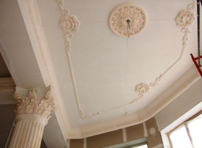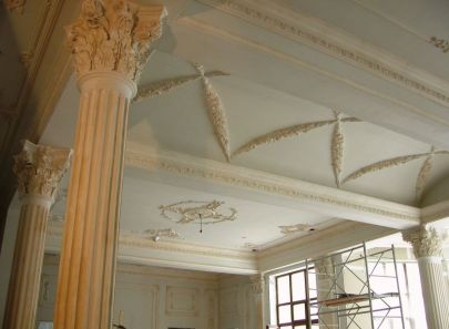 Гипсовый декор называют застывшей музыкой. Это классический вариант оформления колонн, стен, потолка. Популярность материала связана с его пластичностью: удастся вылепить любую форму.