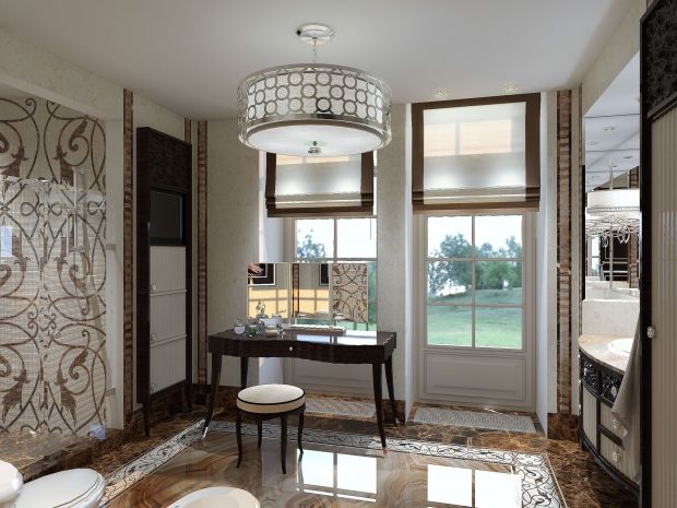 Интерьер классической ванной комнаты подчиняется традиционным канонам дизайна в этой стилистике. Главная цель – создать роскошное и комфортное окружение для повседневной жизни, акцент в элитной внутренней отделке помещения делают на декоративное оформление и натуральные материалы.