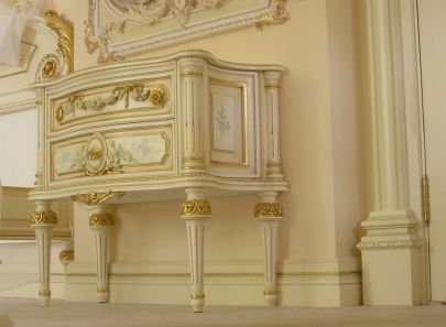 - отделка сочетает изящную лепнину, золочение, задающие ритм рельефные элементы;