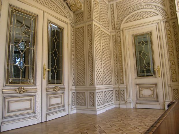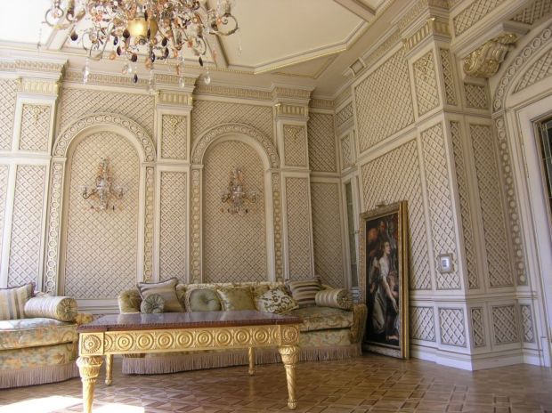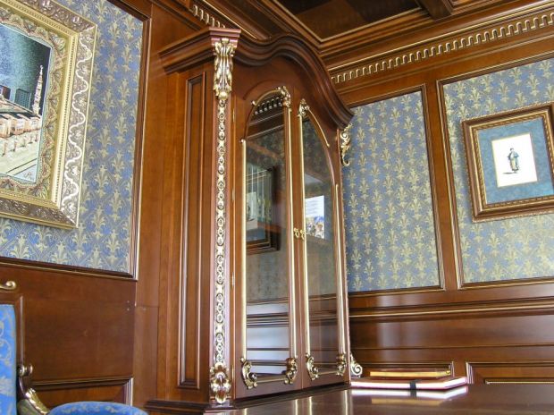 - Оформление поверхностей и мебели включает бронзу, позолоту, резные и кованые детали, лепнину, молдинги – это декор, который формирует стиль и делает его легко узнаваемым.