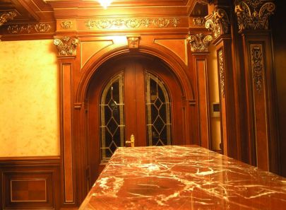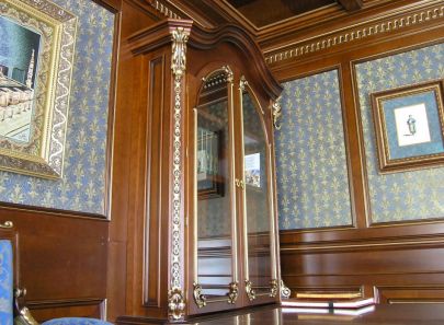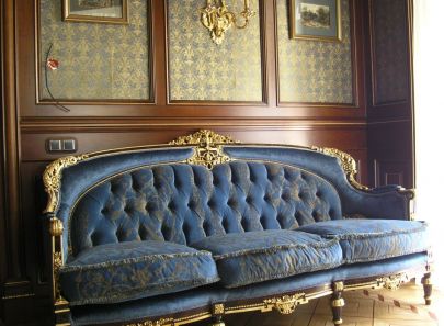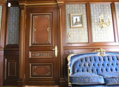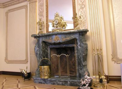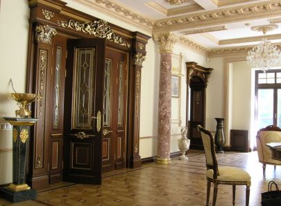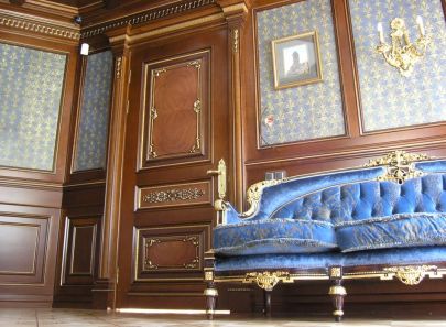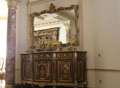 - Оформление поверхностей и мебели включает бронзу, позолоту, резные и кованые детали, лепнину, молдинги – это декор, который формирует стиль и делает его легко узнаваемым.