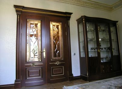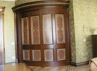 - Уместны дверцы с остеклением, позолоченная или посеребренная фурнитура, патинированная поверхность. Шкафы оснащены распашными дверями, тумбы – выдвижными ящиками.