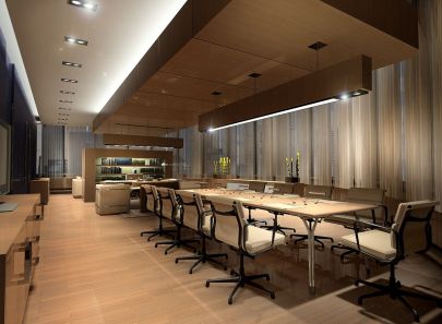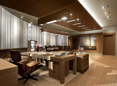 ОтветитьМне очень понравился потолок: он визуально отделяет рабочий стол руководителя, от стола для переговоров. Люстры – шикарные, стильные!! Много дополнительного освещения.