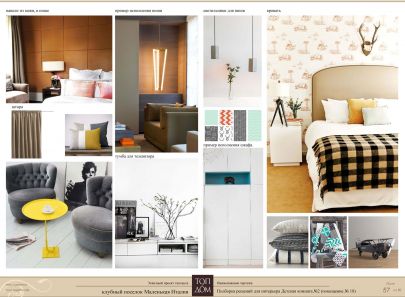 Это следующий этап работы после утверждения общей подборки. Здесь показаны подробности оформления комнаты: